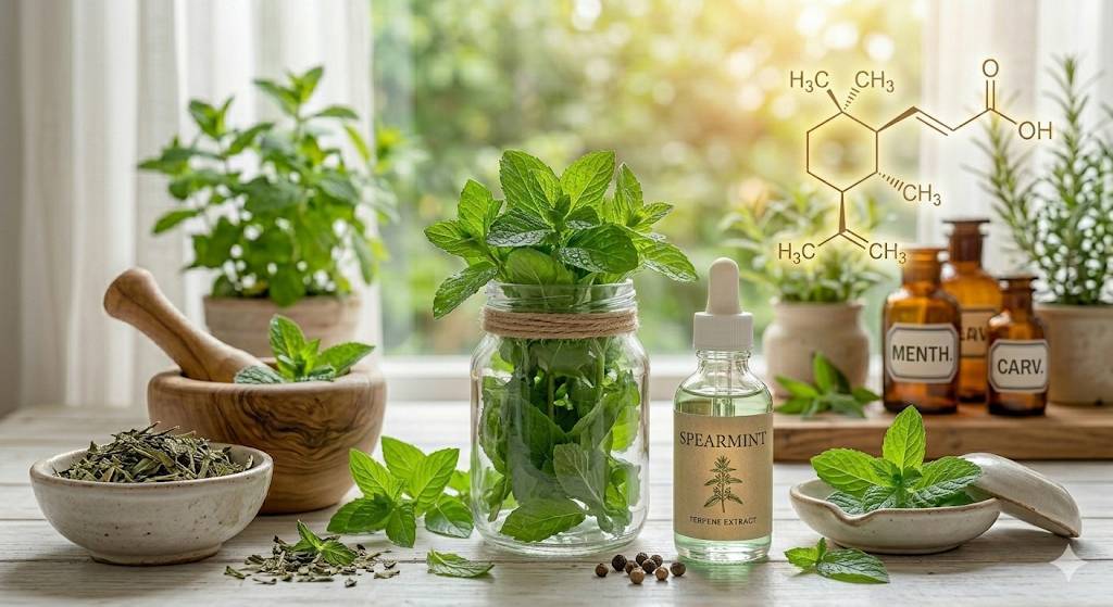 スペアミントのテルペンは、ペパーミントよりも甘みがあり、穏やかで瑞々しい清涼感が特徴です。