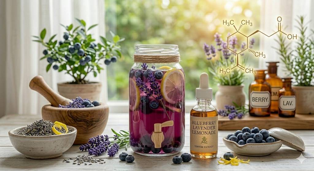 完熟ブルーベリーの甘酸っぱさ、気品あるラベンダーの芳香、そしてレモネードの爽快なキレ。「ブルーベリーラベンダーレモネード」は、心躍るフルーツの恵みと、深い安らぎが見事に調和した特別なプロファイルです。一口(一嗅ぎ)で、心華やぐ特別な休日へとあなたを誘います。