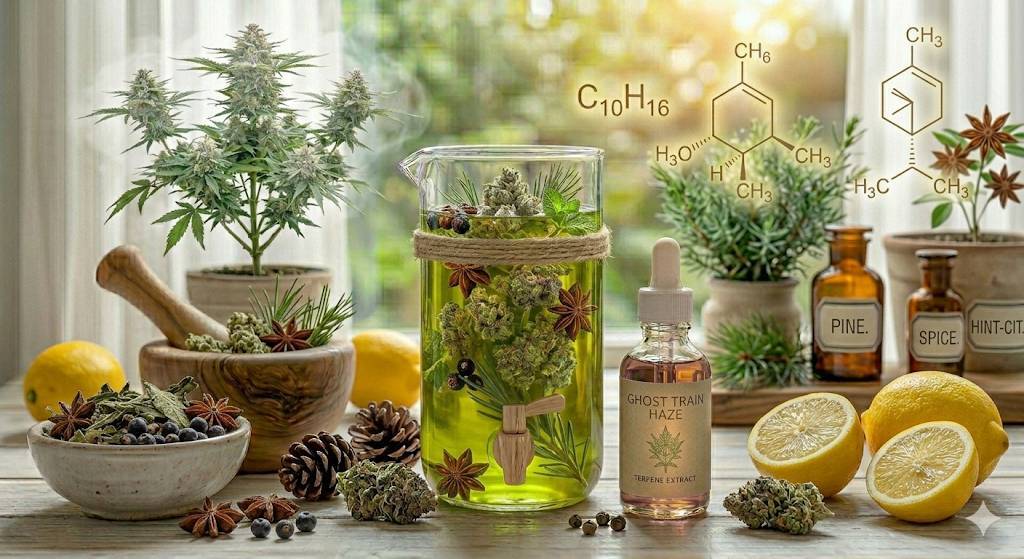 世界中でカルト的な人気を誇る品種「Ghost Train Haze(ゴーストトレインヘイズ)」の複雑で重層的な香りを、天然の植物由来テルペンのみで精巧に再現しました。