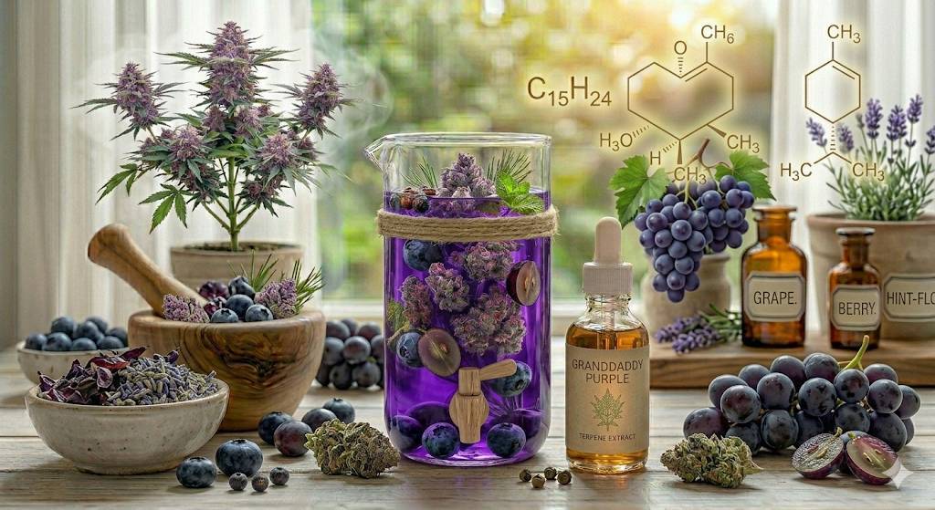 カリフォルニアが生んだ伝説の品種「Granddaddy Purple」の香りを、天然の植物由来テルペンのみで精巧に再現しました。