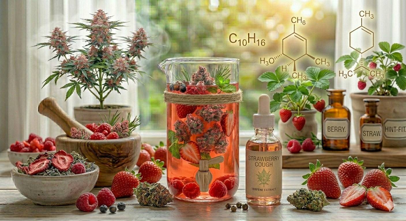 サティバ系の傑作品種「Strawberry Cough」の複雑で重層的な香りを、天然の植物由来テルペンのみで精巧に再現しました。