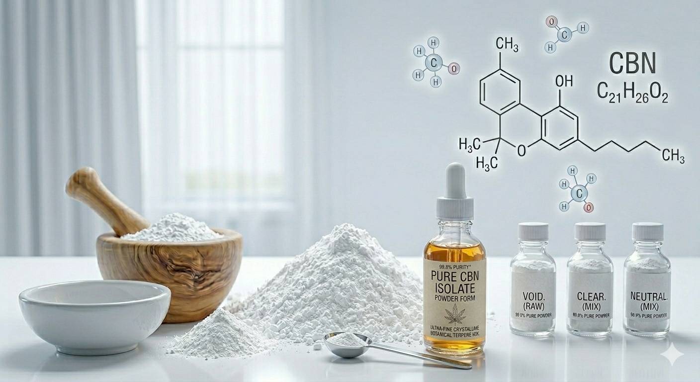 CBDアイソレートと同様の純白なパウダーでありながら、その特性はより「深いリラックス」に特化しています。一日の終わりにスイッチをオフにし、穏やかな夜を過ごしたい。そんなプロフェッショナルなニーズに応える最高純度の原料です。